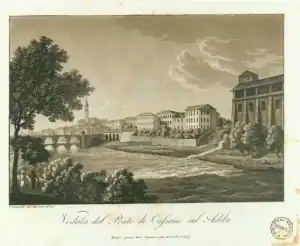 A deep and fast-flowing river, the Adda had limited crossing points, especially for large bodies of men. The town of Cassano was on the right bank, with a stone bridge protected by a small fortification or redoubt. The area was also divided by numerous small streams and irrigation channels, the most significant being the Retorto, an irrigation canal running parallel to the Adda. This was connected to the left bank by another bridge, protected by another strongpoint.[14]