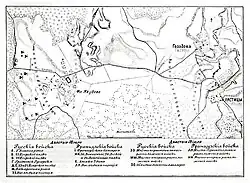 The Battle of Klyastitsy, also called the Battle of Yakubovo or the Battle of Oboyarshchina,[1] was a series of military engagements that took place on 30 July [O.S. 18 July] 1812 – 1 August [O.S. 20 July] 1812 near the village of Klyastitsy on the road between Polotsk and Sebezh. In this battle, the Russian vanguard under the command of General Yakov Kulnev and the whole corps of Gen. Peter Wittgenstein stood up to the French corps under the command of Marshal Nicolas Oudinot with heavy losses on both sides.[1] The result was a Russian victory, their forces managing to capture the disputed village of Klyastitsy. The main strategic outcome of the battle was that the French offensive on St. Petersburg, then Russian capital, was stopped. The French partially retreated along their communication lines after the battle, and fended off Russian pursuers.[4] Both Wittgenstein and Kulnev were wounded in this battle; however, for Kulnev the injury was fatal.