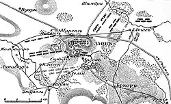 The Battle of Laon, fought on March 9–10, 1814, was a pivotal engagement during the waning months of the Napoleonic Wars. Blücher's Prusso-Russian force defeated French Emperor Napoleon at the town of Laon.[1] Blücher, having approximately 50,000 more troops, acted cautiously, misguided by false information about 90,000 in the French ranks and being sick.[2]