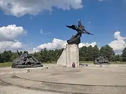 The city has the largest memorial in Belarus to the heroes and victims of World War I. The complex was opened on the 100th anniversary of the outbreak of war in 2014. It includes the sculptures "Winged Genius of Military Glory", "Soldiers of World War I" and "Refugees". A chapel has also been erected on the territory and a "Memory Stone" has been installed with an appeal to descendants. A little further from the entrance, marked by the St. George's Cross, there is a zone of memory and sorrow - a bronze map of the military events of 1915–1917, two memorial urns with soil from the burial sites of soldiers of the Russian and German armies, a chapel with a bell.[9]