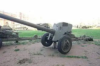 | .jpg) Soviet made T-12 Rapira anti-tank gun, the main weapon used by the Iraqis during the battle | |||||||