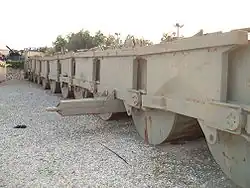 Just north of the Lexicon-Tirtur junction was the village of al-Galaa. Prior to the 1967 Six-Day War, the village had been the site of an agricultural project. This agricultural station incorporated several irrigation ditches and specialized Japanese-made machinery. When the Sinai came under Israeli occupation, Israeli soldiers saw the Kanji characters on the equipment and labeled the area as 'Chinese Farm' on military maps. Just north and north-west of Chinese Farm was a hill mass known by its Israeli codename 'Missouri'.[1][2] During Operation Badr, al-Galaa and the Chinese Farm fell within the designated bridgehead of the 16th Infantry Division. Abd el-Hamid's 16th Infantry Brigade occupied and defended these locations.[18][19] After partaking in the initial canal-crossing, the brigade, along with the rest of the division, faced an attack by Raviv's brigade on October 9. The Israelis achieved some initial gains, but were repelled by the end of the day.[20] Also located within 16th Division's bridgehead, as of October 13, was the 21st Armored Division. Its units were positioned in the center and the north of the bridgehead. The 14th Brigade had been involved in the crossing and, along with the 1st Brigade, participated in the Egyptian offensive on October 14; as a result, it had lost half of its operational tank strength. In the aftermath, Oraby's efforts to reorganize and replace armored losses were hampered by frequent artillery barrages and air strikes. On October 15, there were 136 tanks in the Egyptian bridgehead, unevenly split among Oraby's brigades: 66 with the 1st Armored Brigade, 39 with the 14th Armored Brigade, and 31 in the 18th Mechanized Brigade. Despite their heavy losses, the Egyptian forces in the bridgehead outnumbered Reshef's force.[12][18][21]