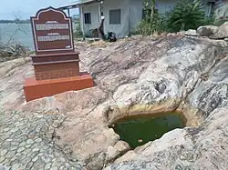 The town acquired the name Batu Pahat, which means "chiselled stone", from the quarries near the estuary.[3] There are multiple theories as to the origin of this name. In around 1456, the Siamese army, led by Admiral Awi Di Chu, camped in Batu Pahat before attacking Malacca.[4] Legend has it that the invading Siamese troops were chiselling rocks at a rocky spot in the coastal village of Kampung Minyak Beku, in hope to get fresh water during their retreat from the Melaka troops, led by Tun Perak, the famous Bendahara (Prime Minister) of the Malacca Sultanate. Another possible explanation for the origin of the name is the fortress ("A Famosa") built by the Portuguese after capturing Melaka, which was made from granite rocks taken from the mouth of Sungai Batu Pahat.