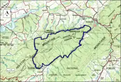 The boundary of the wildland as determined by the Wilderness Society is shown in the adjacent map.[1] Additional roads and trails are given on National Geographic Maps 786 (Mount Rogers).[5] and Map 783 (South Holston and Watauga Lakes)[6] A great variety of information, including topographic maps, aerial views, satellite data and weather information, is obtained by selecting the link with the wildland's gps coordinates in the upper right of this page.
