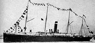 ![]() Belgenland rigged as a schooner and dressed overall | |