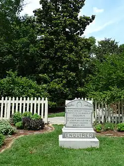 William Giles Harding first worked the McSpadden Bend property along the Cumberland River. He inherited Belle Meade in 1839. During the following decades he acquired additional property to total 5,400-acre (22 km2); by the time of the Civil War, he held 136 enslaved African Americans.[9] In 1853 he incorporated his father's house into a much larger mansion.[10] William Giles Harding would marry Elizabeth McGavock of Carnton; they had two daughters who survived to adulthood named Selene and Mary. With the onset of the Civil War in 1861, Harding had to suspend his racing and breeding operations. As a staunch supporter of the Confederate States of America, he donated $20,000 of his own money, and raised $500,000 total to the costs of the Confederate States Army. In return he was made a Brigadier General and placed in charge of the Nashville Munitions Factory. After Union forces took control of Nashville in April 1862, Harding was arrested. He was sent North and imprisoned in Fort Mackinac in Michigan for six months before paying a $20,000 bond and signing the oath of allegiance to the United States before being released under house arrest at Belle Meade.