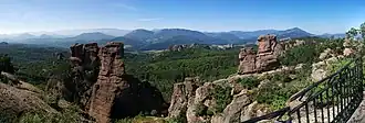 The Belogradchik Rocks (Bulgarian: Белоградчишки скали, Belogradchishki skali) are a group of strangely shaped sandstone and conglomerate rock formations located on the western slopes of the Balkan Mountains (Stara Planina) near the town of Belogradchik in northwest Bulgaria. The rocks vary in color from primarily red to yellow; some of the rocks reach up to 200 m in height. Many rocks have fantastic shapes and are associated with interesting legends. They are often named after people or objects they are thought to resemble. The Belogradchik Rocks have been declared a Natural Landmark by the Bulgarian government and are a major tourist attraction in the region. They are the only habitat of the critically endangered Bulgarian endemic plant Hieracium belogradcense.[1]