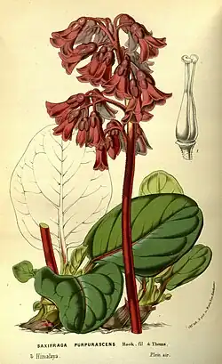 - ^ a b "Bergenia purpurascens (Hook.f. & Thomson) Engl". Plants of the World Online. Board of Trustees of the Royal Botanic Gardens, Kew. Retrieved 8 April 2021.