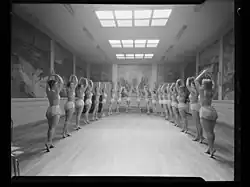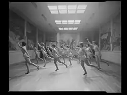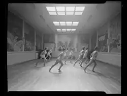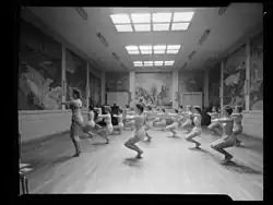 Mensendieck School in Oslo, Norway, 1950s, photos show women student physiotherapists training the Mensendieck System. The private college was established for Mensendieck-based physiotherapist education in Oslo in 1927 under the name Norsk Mensendieckskole A/S and was taken over by the Norwegian state in 1979. In 1992, the Mensendieck School was incorporated into the Bislet University College Center (Bislet høgskolesenter) and named the Mensendieckschool in Oslo College of Physiotherapy. From August 1994, it became part of the Department of Health Sciences at the newly established Oslo University College, now Oslo Metropolitan University.[10] The education was called bachelor in physiotherapy, field of study Mensendieck, but was discontinued in 2020.[11]