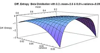 This parametrization of the beta distribution may lead to a more intuitive understanding than the one based on the original parameters α and β. For example, by expressing the mode, skewness, excess kurtosis and differential entropy in terms of the mean and the variance: