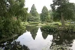 The Beth Chatto Gardens are an informal collection of historically significant gardens in Essex, England, with National Heritage[1] Grade II listing. The ecological gardens were created by plantswoman Beth Chatto in 1960 from the gravel soil and bogs of the disused fruit farm belonging to her husband, botanist Andrew Chatto. They are a series of gardens[2] that display examples of sustainable planting based on Beth Chatto's ethos of 'right plant, right place'.[3] The gardens are located at White Barn House in the village of Elmstead Market, 6 miles (9.7 km) east of Colchester.