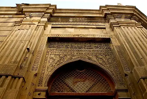 Beylər Mosque was built in 1895 in the north-western part of the İcherisheher, near the Murad Gate of the Shirvanshahs' Palace.[3] The mosque got its name because it was commissioned by the famous Beys (noblemen) of Baku.[4] The construction of the mosque was financially supported by Muhammad Hashim Al-Bakui’s sons, Haji Baba and Haji Javad, as well as the renowned millionaire Murtuza Mukhtarov.[5] The mosque’s architect was Seyid Hüseyn, while the calligraphers involved in the design were Ibrahim Shirvani, Mir Ali en-Nağı, and Mir Taghi. This mosque is also the last mosque built in the İcherisheher.[4]