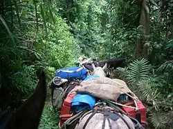 The Bicentennial National Trail (BNT), originally known as the National Horse Trail,[1] is one of the longest multi-use, non-motorised, self-reliant trails in the world, stretching 5,330 kilometres from Cooktown, Queensland, through New South Wales and the Australian Capital Territory to Healesville, 60 km north-east of Melbourne. This trail runs the length of the rugged Great Dividing Range through national parks, private property and alongside wilderness areas. The BNT follows old coach roads, stock routes, brumby tracks, rivers and fire trails. It was originally intended for horses, but is these days promoted also for cycling and walking, though it is not yet entirely suited to these two activities.[2]