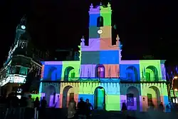 The government of San Luis prepared a replica of the May Square, the Buenos Aires Cabildo, and the May Pyramid, in their 1810 designs.[16] The replica would differ from the Cabildo's present appearance, as urban development in the twentieth century led to the removal of several outside columns to make room for avenues. The project is planned for the town of La Punta, and Governor Alberto Rodríguez Saá intends to keep it as a cultural and educational center.[17]