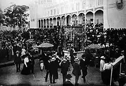 The 9 de Julio Avenue was closed to the traffic between Corrientes and Belgrano avenues during the festivity days, and was used to host the main celebrations. Celebrations started on May 21, with a concert of Argentine rock bands. Litto Nebbia acted as host, and performers included Fito Páez and León Gieco.[6] Temporary installations on the avenue were complemented by the earlier opening of the interactive National Bicentennial House,[7][8] in the Recoleta section of the city, and of the initial phase of the Bicentennial Cultural Center, in the former Buenos Aires Central Post Office;[9] the cultural center was scheduled to be completed in 2012.