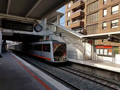 Starting in 1947, the narrow-gauge railway companies that operated within the Bilbao metropolitan area were merged to become Ferrocarriles y Transportes Suburbanos, shortened FTS and the first precedent of today's Bilbao metro. In 1977, the FTS network was transferred to the public company FEVE and in 1982 to the recently created Basque Railways.[4] In the 1980s it was decided the station, just like most of the former railway line, would be integrated into line 1 of the metro, with the new station opening now as part of the metro network on 11 November 1995.[5]