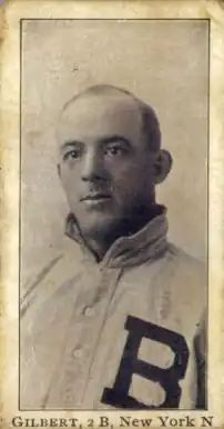 McGraw jumped to the New York Giants of the National League during the 1902 season. He signed Gilbert to the Giants for the 1903 season and installed him as the team's starting second baseman.[1] Not a highly regarded hitter, Gilbert contributed with his bat as the Giants defeated the Philadelphia Athletics in the 1905 World Series,[2][3] leading the team in batting average during the series.[4]