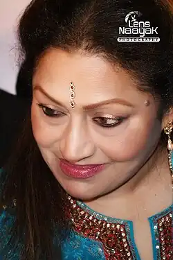 Bindu Nanubhai Desai (born 17 April 1941),[1] better known mononymously as Bindu, is a former Indian actress who was popular in the 1970s. She has acted in over 160 movies in a career that spanned four decades, receiving seven Filmfare Award nominations. She is most remembered for her role as Shabnam in Kati Patang (1970) and for her films opposite Prem Chopra.[2]