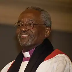 Michael Bruce Curry (born March 13, 1953) is an American retired bishop who was the 27th presiding bishop and primate of the Episcopal Church. Elected in 2015, he was the first African American elected to the role, having previously served as Bishop of North Carolina from 2000 to 2015. His tenure as presiding bishop ended on November 1, 2024, and he was succeeded by Sean Rowe.[3]
