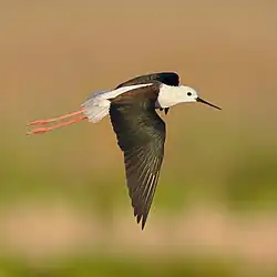 The breeding habitat of all these stilts is marshes, shallow lakes and ponds. Some populations are migratory and move to the ocean coasts in winter; those in warmer regions are generally resident or short-range vagrants. In Europe, the black-winged stilt is a regular spring overshoot vagrant north of its normal range, occasionally remaining to breed in northern European countries. Pairs successfully bred in Britain in 1987,[11] and after a 27-year hiatus there were two instances of successful breeding in Southern England in 2014.[12] 13 young were fledged in southern England in 2017.[13] Four chicks were successfully fledged in northern England in 2022; this is believed to be the most northerly breeding success for the black-winged stilt.[14][15]
