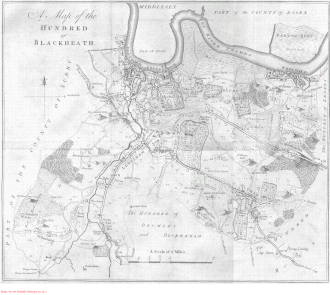 6. ^ a b British History Online - Map of Blackheath Hundred, (1973)