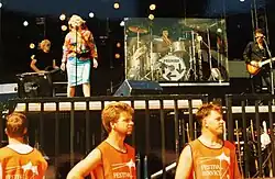 The band's first commercial success occurred in Australia in 1977, when the music television program Countdown mistakenly played their video "In the Flesh", which was the B-side of the single "X-Offender".[7] Jimmy Destri later credited the show's Molly Meldrum for their initial success, commenting that "we still thank him to this day" for playing the wrong song.[21] In a 1998 interview, drummer Burke recalled seeing the episode in which the wrong song was played, but he and Stein suggested that it may have been a deliberate subterfuge on the part of Meldrum. Stein asserted that "X-Offender" was "too crazy and aggressive [to become a hit]", while "In the Flesh" was "not representative of any punk sensibility. Over the years, I've thought they probably played both things but liked one better. That's all." In retrospect, Burke described "In the Flesh" as "a forerunner to the power ballad".[22]