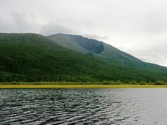20 km (12 mi) to the south, across the Tsipikan River, rises the smaller Maly Khapton range, highest point 2,135 m (7,005 ft). It runs parallel to the Bolshoy Khapton at the southern limit of the Baunt Depression.[2]