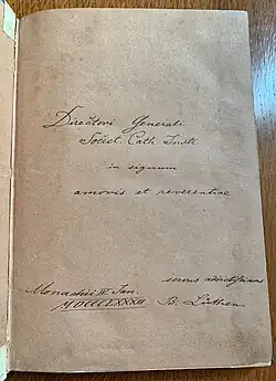 On December 8 of that year, Father Jordan, along with Father Bernard and another priest, Father von Leonhardi, professed private vows as the first members of Father Jordan's Apostolic Teaching Society in the chapel of Saint Bridget of Sweden (the monastery in Rome's Piazza Farnese where Father Jordan was renting rooms). This new society did not have the formal character of a religious congregation and Father Bernard returned to his work in Germany.
