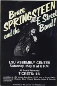 After the April 29 show in Memphis' Ellis Auditorium, Springsteen decided to catch a taxi to Graceland. Upon arrival he had noticed a light on in the house and proceeded to jump the gates and walk to the front door. Security intervened at which point Springsteen asked if Elvis Presley was home, but Presley was in fact in Lake Tahoe. The guards not having any idea who this visitor was, even after Springsteen tried to explain it to them and state that he had been on the covers of Time and Newsweek, politely escorted him to the street. Years later Springsteen would tell the story in concerts and reminisce about what he would have said to Presley had he answered the door.[3]