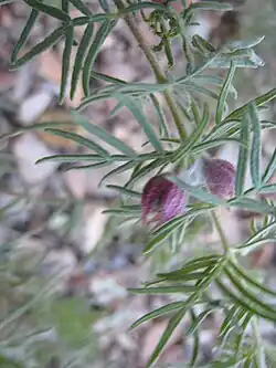 Boronia lanuginosa is a perennial[4] of a height from 0.4–1.5 m (1–5 ft).[5] The leaves are pinnate, the pinnae being linear with revolute margins.[5] Its flowers are white to pink and it flowers and fruits from January through to November[4] (January to September.[5])