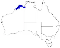 This species is classified as "not threatened" by the Western Australian Government Department of Parks and Wildlife[5] and as "near threatened" under the Territory Parks and Wildlife Conservation Act 2000.[9]