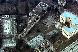During the referendum on 1 March, Sarajevo was quiet except for a Serbian wedding being fired upon.[84] The brandishing of Serbian flags in the Baščaršija was seen by Muslims as a deliberate provocation on the day of the referendum.[85] Nikola Gardović, the bridegroom's father, was killed, and a Serbian Orthodox priest was wounded. Witnesses identified the killer as Ramiz Delalić, a gangster who had become a brazen criminal since the fall of communism and was stated to have been a member of the Bosniak paramilitary group the "Green Berets". Arrest warrants were issued against him and another suspected assailant. SDS denounced the killing and claimed the failure to arrest him was due to SDA or Bosnian government complicity.[86][87] A SDS spokesman stated it was evidence that Serbs were in mortal danger and would be further so in an independent Bosnia, which was rejected by Sefer Halilović, founder of the Patriotic League, who stated it was not a wedding but a provocation and accused the wedding guests of being SDS activists. Barricades appeared the following morning at key transit points across the city and were manned by armed and masked SDS supporters.[88]