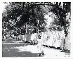 The original Festival, briefly named the "Boston Art Festival," was held at Boston's Public Garden between 1952 and 1964.[6] That version is credited with democratizing access to the fine arts in Boston, especially for young, emerging and often Jewish-American, artists who felt shut out of Boston's famously Brahmin museums and other institutional exhibition sites. Activist artists, either linked by the Boston Museum School or the Boris Mirski Gallery founded the Boston Arts Festival. The first Festival debuted on June 12, 1952,[6][7] and displayed fine art in tents in the Public Garden, and provided free performances in nearby Boston Common. This represented a major break in how art was presented in New England. No longer confined to the monied and the elite, the early Festivals provided avant garde artists with a forum in which to show their work, compete and interact with one another. That exchange of ideas and influences developed into the earliest form of American Figurative Expressionism, known as Boston Expressionism.