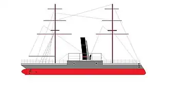 Mariz e Barros was built at the English shipyard J. and G. Rennie and acquired by Brazil in 1865.[1] She belonged to the same class as the ironclad Herval. The ship arrived in Brazil on July 8, 1866, and was incorporated into the Navy on the 23rd, under the command of Captain lieutenant Silvino José de Carvalho Rocha.[4]
