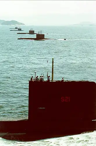 ![]() The brazilian submarine Tonelero in foreground | |