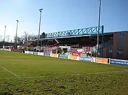 It is the home ground of Histon F.C. and has a capacity of 4,300 with approximately 1,700 covered seats.[1] Recently the ground has gone under a transformation improving its facilities ensuring that it is of a high enough standard to allow the Stutes to be promoted to the Conference National – as recently as 2003 the club only had covering in the Main Stand for around 350 fans and a small 'temporary' covered standing area which held around 150 fans. The ground's main structures are two grandstands situated at the entrance to the ground, running down one side of the pitch. Opposite is a smaller covered stand, and covered terraces are found behind each goal. The away end is called 'Bridge Road' in reference to the road it runs adjacent to; it is behind the goal to the right of the main grandstand looking from it. The opposite terrace is called the Rec End by the Histon fans. It is mainly used by the home fans when games are segregated.