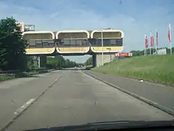 In Germany, there are two MSAs built as bridge restaurants. The first opened in 1967 at the Rudolphstein/Hirschberg crossing of the inner German border along the Berlin Munich transit route. Visitors had a view of the iron curtain from the restaurant. The second was built at the Dammer Berge MSA over the A 1 at Holdorf in 1969. Building bridge restaurants in Germany was more expensive than two restaurants at both roadsides. Because of the length of the bridges, many facilities, such as toilets, kitchens, and storage rooms had to be built twice on a bridge, so it turned out that it was too expensive to build further bridge restaurants over the Autobahn.[5] In Belgium the concept is widespread and still applied for new MSAs. At the beginning of the 1970s, Jacques Borel introduced the bridge restaurant to France, and Mövenpick followed soon in Switzerland. The Netherlands followed in 1980 with Rick's, situated at Den Ruygen Hoek MSA near Schiphol. Scandinavia got its first bridge restaurant in the mid-1980s.
