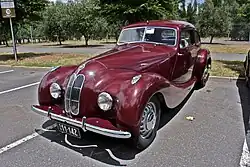 HJ Aldington, a director of the Bristol Aeroplane Company affiliated AFN (BMW's pre-war concessionaire in the UK), used his British Army connections to visit the bombed BMW factory in Munich several times post-war. In 1945 he took plans for BMW cars back to Britain,[7] and BMW chief engineer, Dr. Fritz Fiedler was also employed. Its first car was the Bristol 400, prototyped in 1946 and introduced at the 1947 Geneva Motor Show. Derived from immediately pre-WW2 BMW products (thanks to a connection to BMW through Frazer Nash), the chassis was based on the BMW 326, the engine on the 328,[22] and the body on the 327. Even a variation on the famous double-kidney BMW grille was retained. Bristol, however, did a thorough examination of the car's handling and ended up with performance "only matched by outright purpose-built competition cars".[23] Seven hundred of the Bristol 400 were built, 17 of which received "handsome" drophead bodywork from Pininfarina.[5]