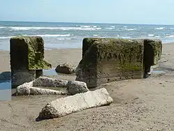 - ^ Image of anti-tank cubes subsumed by sand.