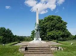He and his siblings completed the National War Memorial of Canada after the 1930 death of their brother, sculptor Vernon March.[20] Other monuments for which he is renowned include the Royal Inniskilling Fusiliers South African War Memorial in Northern Ireland,[21] the United Empire Loyalist Monument in Canada,[22] and the Lancaster Monument in England.[23] Smaller-scale pieces include the portrait busts of King Edward VII[24] and Cecil John Rhodes,[25] both in the National Portrait Gallery in London. Sydney March died in 1968 at age 92.[26] His ashes were interred in the family plot at Saint Giles the Abbot Churchyard in Farnborough.[27] In 1922, Sydney had sculpted the bronze angel monument that marks the March plot.[18]