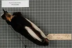 Many unknown Parotia specimens arose in Europe in the late 1800s and were owned by Berlepch. Unlike Carola's parotia, the specimens kept by Berlepsch had smaller bills with more of a prominent hooked tip, different plumage figures, and very slight size difference. The specimen was given its current scientific name to honor its owner in 1897.[4]