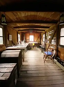 Cook \ Utility Box Car – Ron Daniel, while a Southwest Florida Water Management employee, discovered an abandoned box car in a swampy area southeast of Brooksville in Sumter County.[12] It was hauled to the Brooksville Train Depot and restored. The work car was originally owned by Cummer Sons Cypress Lumber Company which cut timber in the area of the “Green Swamp”. The work car's normal function was to transport workers to the work site, but the box car could be used to provide space for cooking and eating, sleeping, office work, and machinery operations.