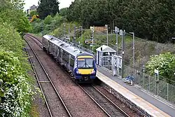 As of the May 2021 timetable change, the station is served by an hourly service between Edinburgh Waverley and Tweedbank, with a half-hourly service operating at peak times (Monday to Saturday). Some peak time trains continue to Glenrothes with Thornton. All services are operated by ScotRail.[1]