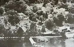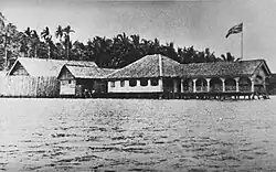 The residency underwent no significant restorations or changes between 1929 and 1940 because the country's economy was greatly enhanced by the growth of the oil industry. Though specifics are still unknown, estimates for 1940 included $3,500 for "alterations and repairs" to the residency, part of which might have gone toward a new garage and an addition on the building's southern side. The residency served as Japanese headquarters during the Japanese occupation of Brunei in December 1941.[a][12] The residency only sustained a few bullet wounds in the roof from Allied aircraft machine guns during the 1944 bombardment of Brunei Town. Despite the town's extensive destruction, the residency appears to be mostly intact in a 1948 annual report shot. Wing Commander K. E. H. Kay served as the Senior Civil Affairs Officer during the brief British Military Administration occupation of the residency following the June 1945 landing of Allied forces at Muara Beach.[13] Sultan Ahmad Tajuddin was cordially greeted by the Australian 9th Division upon his return to Brunei Town on 17 June 1945, following the liberation of Brunei by the Australian Army. In the residency, the Australian military commander arranged for him to be greeted with a Guard of Honour and served tea.[14] British Resident John Peel returned to the residency once civil authority was restored in July 1946.[13] According to reports and photographs, the garage and addition were constructed about 1948.[15]
