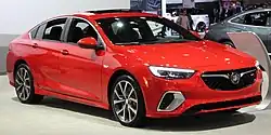 For the 5th generation Buick Regal, the GS version of the Regal was based on the Opel Insignia OPC and the Vauxhall Insignia VXR. This front-wheel drive sedan GS features Buick's Interactive Drive Control System with GS mode, a choice of an FGP Germany F40-6 six-speed manual or Aisin AF-40 (G2) six-speed automatic transmission, high performance brakes with Brembo front calipers and high performance strut (HiPerStrut) front suspension. 19 inch wheels will be standard and 20 inch forged aluminum wheels will be available. The GS is expected to accelerate from zero to 60 miles per hour in under seven seconds. It is equipped with GS-only high-output version of the Ecotec 2.0L turbo engine with 270 hp (201 kW) and 295 lb⋅ft (400 N⋅m) of torque. The GM LHU engine used in the GS trim makes 135 hp per liter.