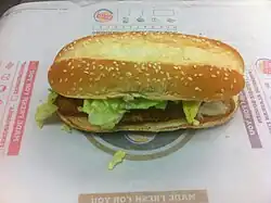 A grilled Italian sausage sandwich was sold in 1992 and was served with onions and peppers or parmigiana style with mozzarella cheese and marinara sauce.[27] As part of the company's BK Dinner Baskets promotion in 1993, the chain introduced a grilled meatloaf sandwich with ketchup and onions in the United States.[28][29] In 2013, Burger King sold a bratwurst sandwich in a regional limited time offering in the US states of Wisconsin and Illinois. The sandwich featured a bratwurst manufactured by Johnsonville Foods, raw onion and yellow mustard.[30] Despite being discontinued, versions of the steak sandwich have been re-released several times since the 1970s. The BK Dinner baskets featured a steak sandwich,[31] and in 2003 Burger King New Zealand introduced the Big Bloke Steak Sandwich which was almost identical to the 1979 sandwich.[32]