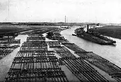 Wood rafted through the canal, of which the vast majority was pine, originated mostly from the Congress Poland (75%), but also from Galicia (12%), Russian Empire (5%) and Tuchola Forest (6%). Almost the entire transport of wood was channeled into central Germany: Berlin, Magdeburg, Hamburg, Dresden and lands over the Elbe and Havel.[2] As far as traffic is concerned, peak activity for Bydgoszcz canal had stretched on a 40-year period, from 1870 to 1910.