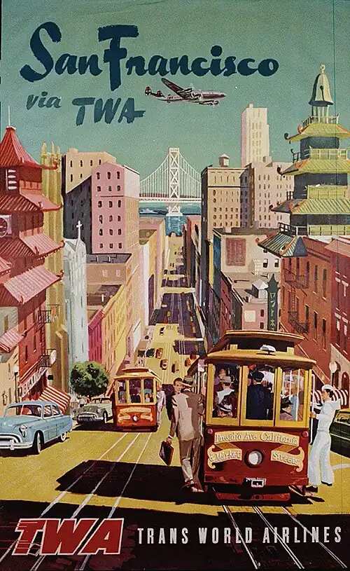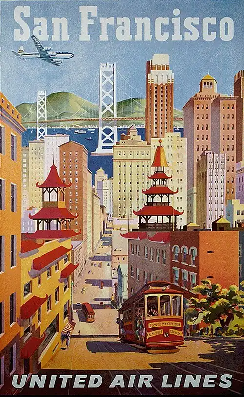 ![]() View from the top of California Street Looking towards the financial district with the Bay Bridge in the background | |