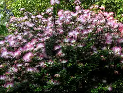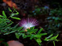 Calliandra brevipes, the pink powderpuff, is an attractive shrub with finely divided leaves and clusters of red powder-puff flowers. It is native to southeastern Brazil, Uruguay, and northern Argentina.