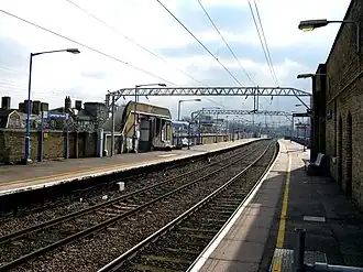 In 1894, with increasing traffic, the GER opened two additional tracks on the eastern side, which are known as the Fast Lines today, to allow longer distance trains to bypass the station.[4][5] No platforms were opened on these new lines. The 1872 station building was also demolished at that time, being replaced by a new building constructed beside the Fast Lines with access to platforms provided by means of a subway.